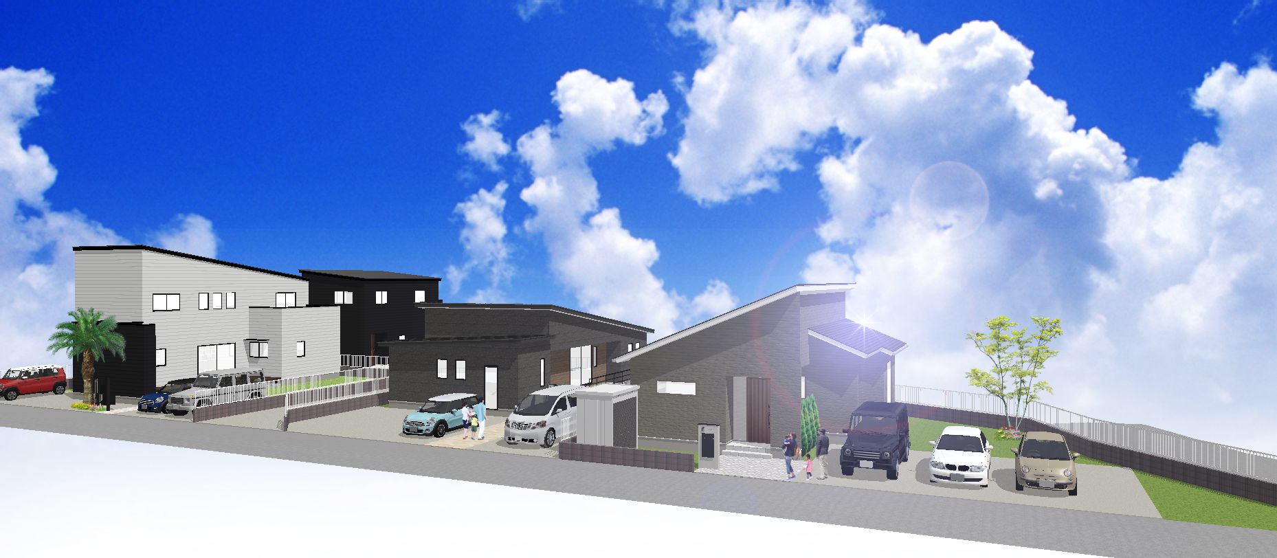 一つ一つの区画も広々しているので駐車場2台以上は確保しやすくお庭も作れます。